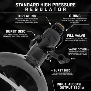 The HK Army AeroLite Air System has been developed with performance and affordability in mind. The comprehensive system pairs a lite-weight carbon fiber bottle and a reliable aluminum regulator with an output pressure of 800 psi. The AeroLite system includes a 5-year hydro cycle and is available in 4 color options.